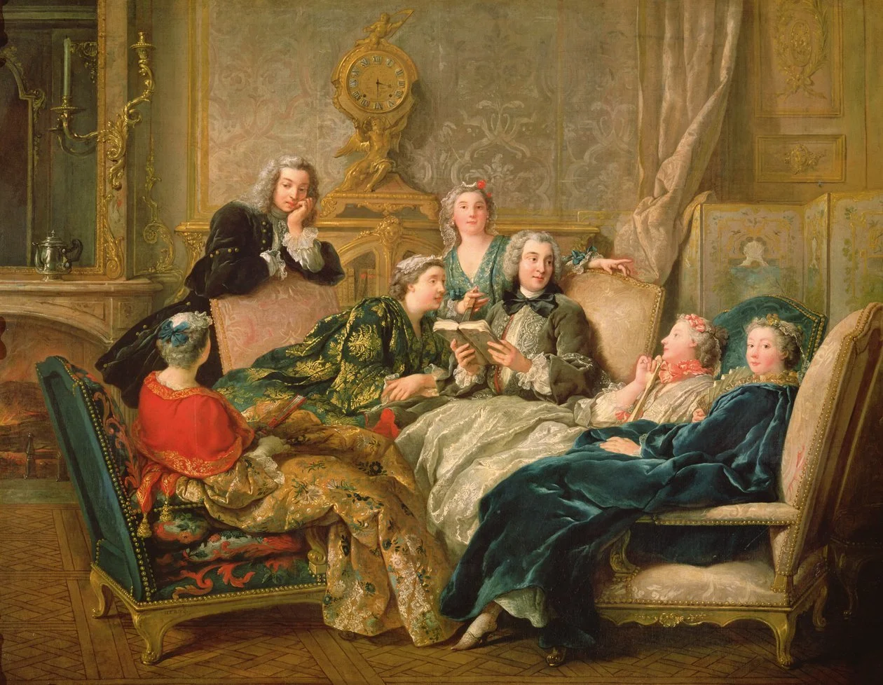 The Reading from Molière (c. 1728) by French artist Jean-François de Troy